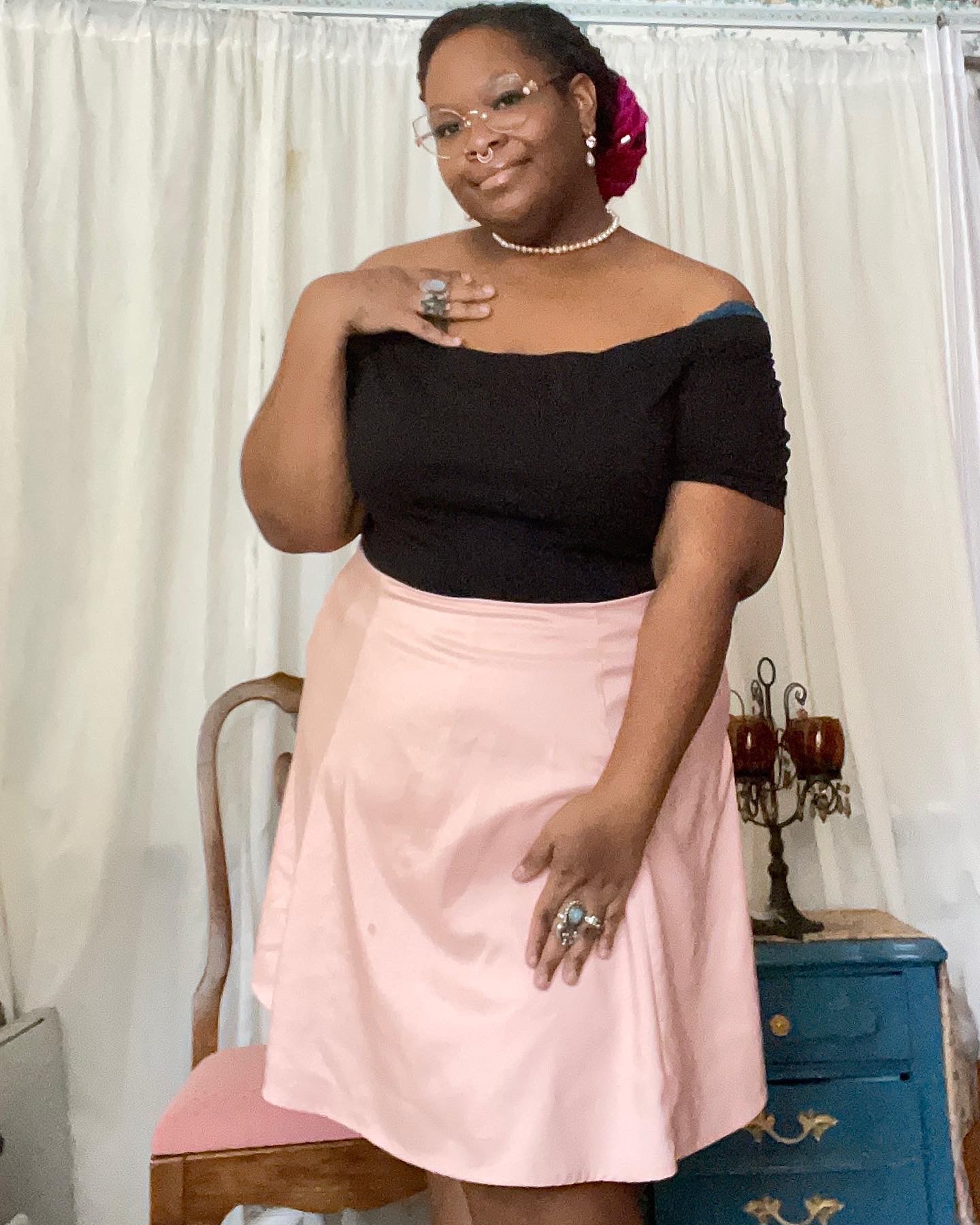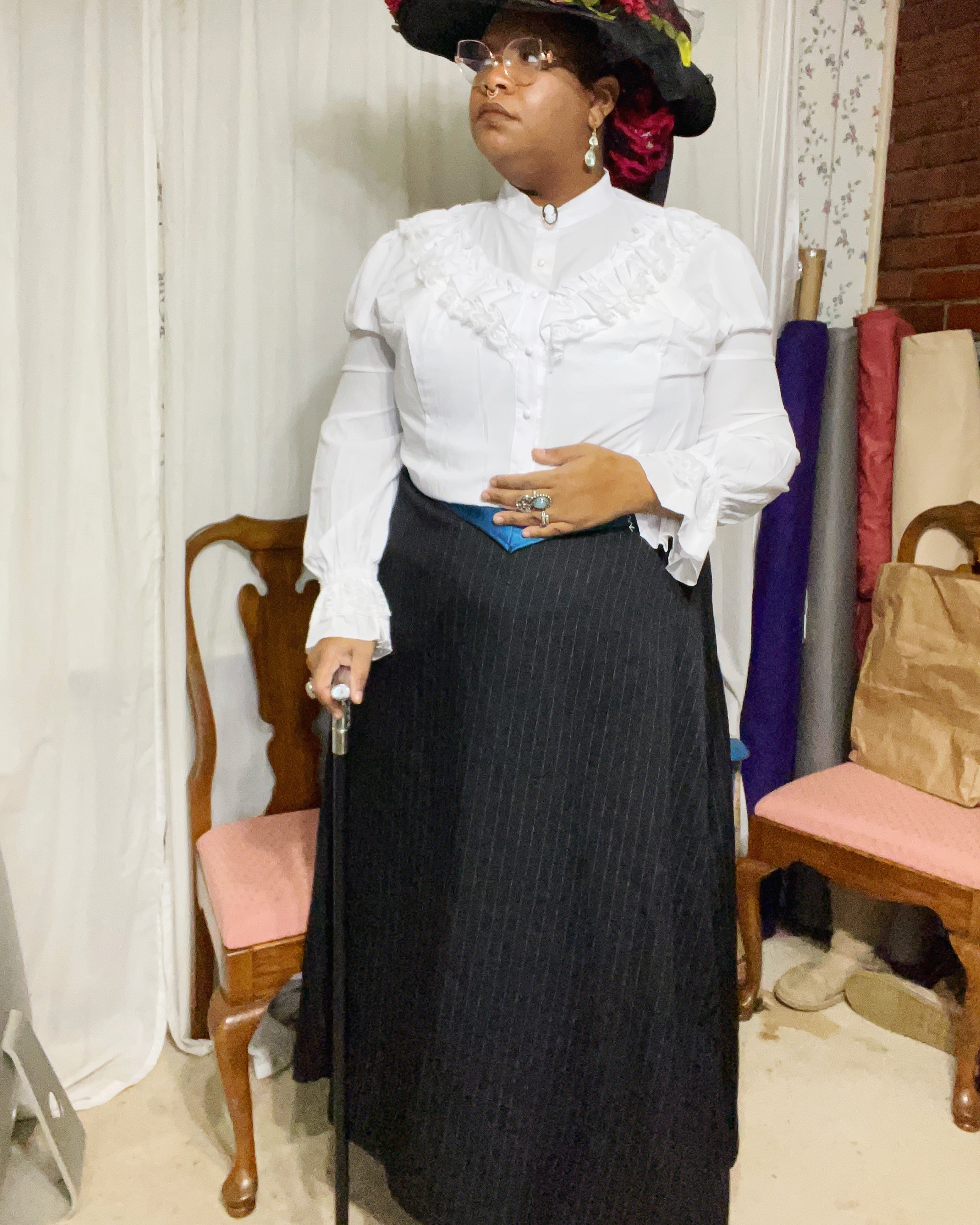 This means that I have of course brought my sewing machine and such with me, and have been working on two ensembles, and a couple of accessories. I will be finishing the wearable mock-up for the Amalia Jacket here and cutting the pieces so that I can finish the full silk version while I am in France. Along with a petticoat, a mantle, two fur muffs, a pair of mitts, and a shift. At least, for now. Tomorrow, I swing by my house to gather the rest of the clothing and accessories that I plan to wear while away. Now this is kind of a big deal because I am doing my personal project: 28 Days of Historical Dress during February, which I have been doing for 3 years now (I think? it may be 2). So while it is easy to pick out what to wear each day while I am at home, I now have to deliberately plan my outfits ahead and pack them without going overboard with my packing (which I am prone to do, but since I am limited on bag space, I *need* to plan what I am packing thoroughly). I’m thinking of keeping things relatively simple, and just going with some classic vintage from the 1920’s through the 1950’s. So a couple of different dresses, wide leg trousers, kimono sleeved cardigans, and the like. And of course, my historical stuff. 18th century, a regency gown or two, and an Edwardian ensemble. The Edwardian ensemble is for this years #BGGL (Black Gibson Girl Legacy), created by the amazing Jasmine Le Fleur, the creative genius behind Black Fae Day.